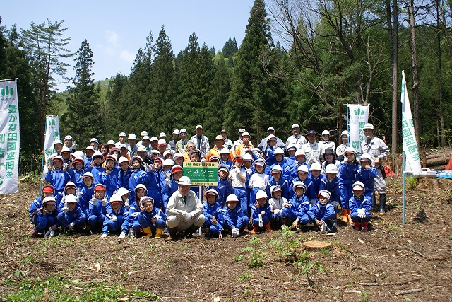 雫石町鴬宿にある土地改良区所有の水源涵養林内において、植樹体験学習会を開催しました。晴天のなか盛岡市立永井小学校4年生と永井地区まちづくりの会関係者など約90名が参加し、アオダモの苗木390本の植樹を通じて、水源涵養林の機能などを学びました。