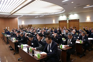 平成23年3月4日午後1時30分より鹿妻穴堰土地改良区大会議室において第61回通常総代会を開催しました。総代現員数65名の出席を得て、来賓に東北農政局北上土地改良調査管理事務所長 清水一教氏、岩手県盛岡広域振興局農政部農村整備室長 芦長喜氏、矢巾町長 川村光朗氏を迎え、土地改良区功績者表彰ののち、議長に大志田明総代(盛岡市飯岡地区)を選出し、鹿妻穴堰土地改良区定款の一部変更について等34案件について審議がなされ、いずれも原案のとおり承認、可決されました。