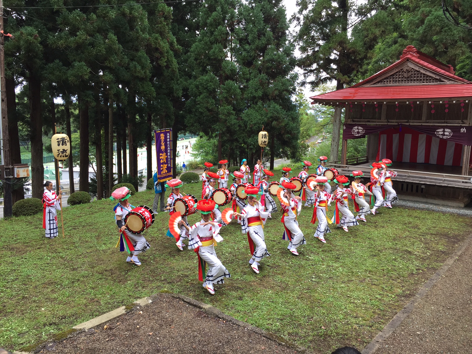 盛岡市猪去地内にある鹿妻神社において、鹿妻穴堰通水五穀豊穣式典が行われました。当日は氏子総代並びに関係者約100名の出席により、五穀豊穣と鹿妻穴堰を開鑿したとされる鎌津田甚六を称え神事が執り行われました。今年は盛岡市見前の宮崎神楽と盛岡さんさ清流会によるさんさ踊りが奉納されました。
