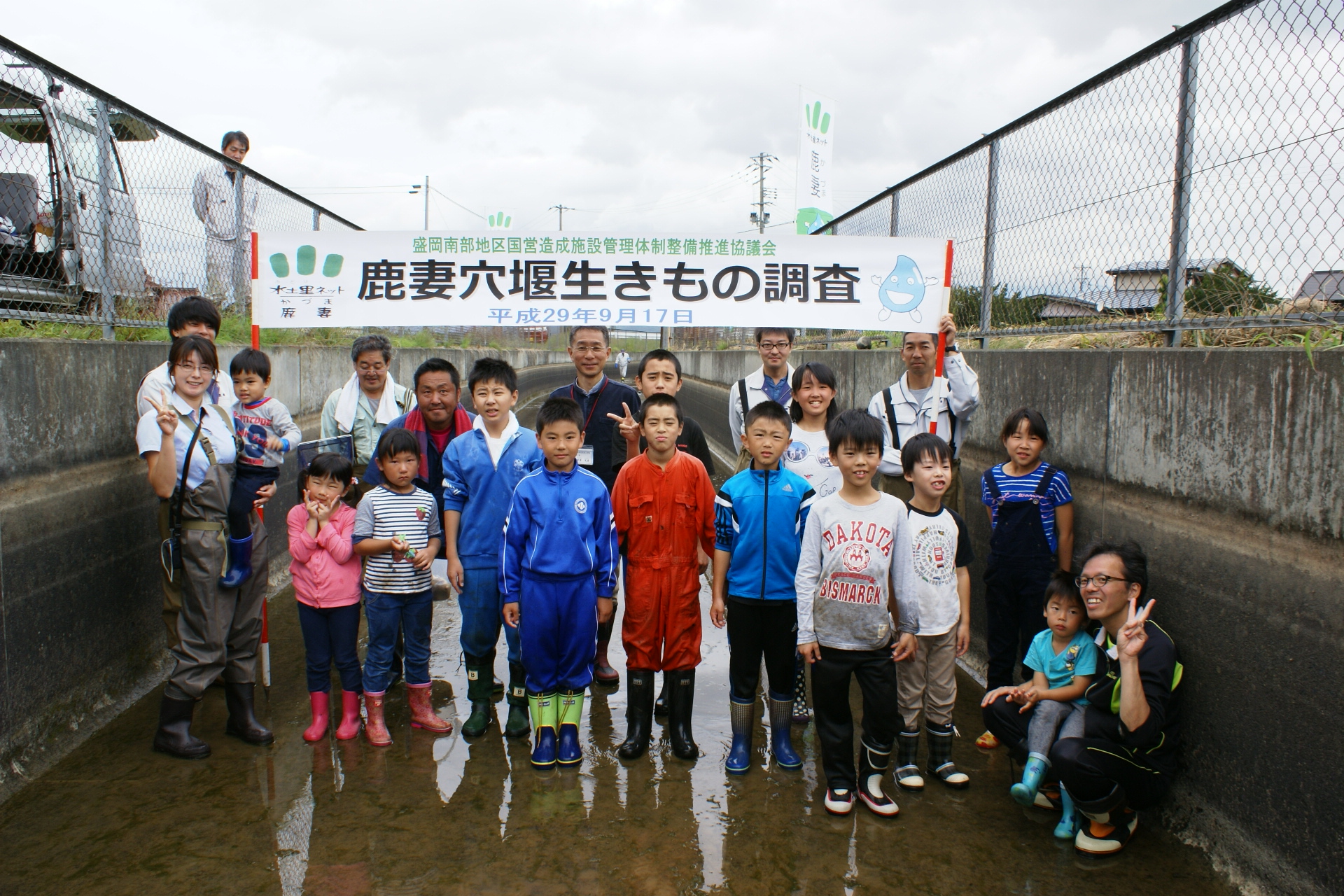 鹿妻穴堰生きもの調査を盛岡市上鹿妻地内の幹線用水路1号サイホン工で行いました。地域の子供達と関係者あわせて約50名が参加し、施設に生息する多様な生きものを調査しました。子供達は施設にはたくさんの生きものがいることを学んだようです。