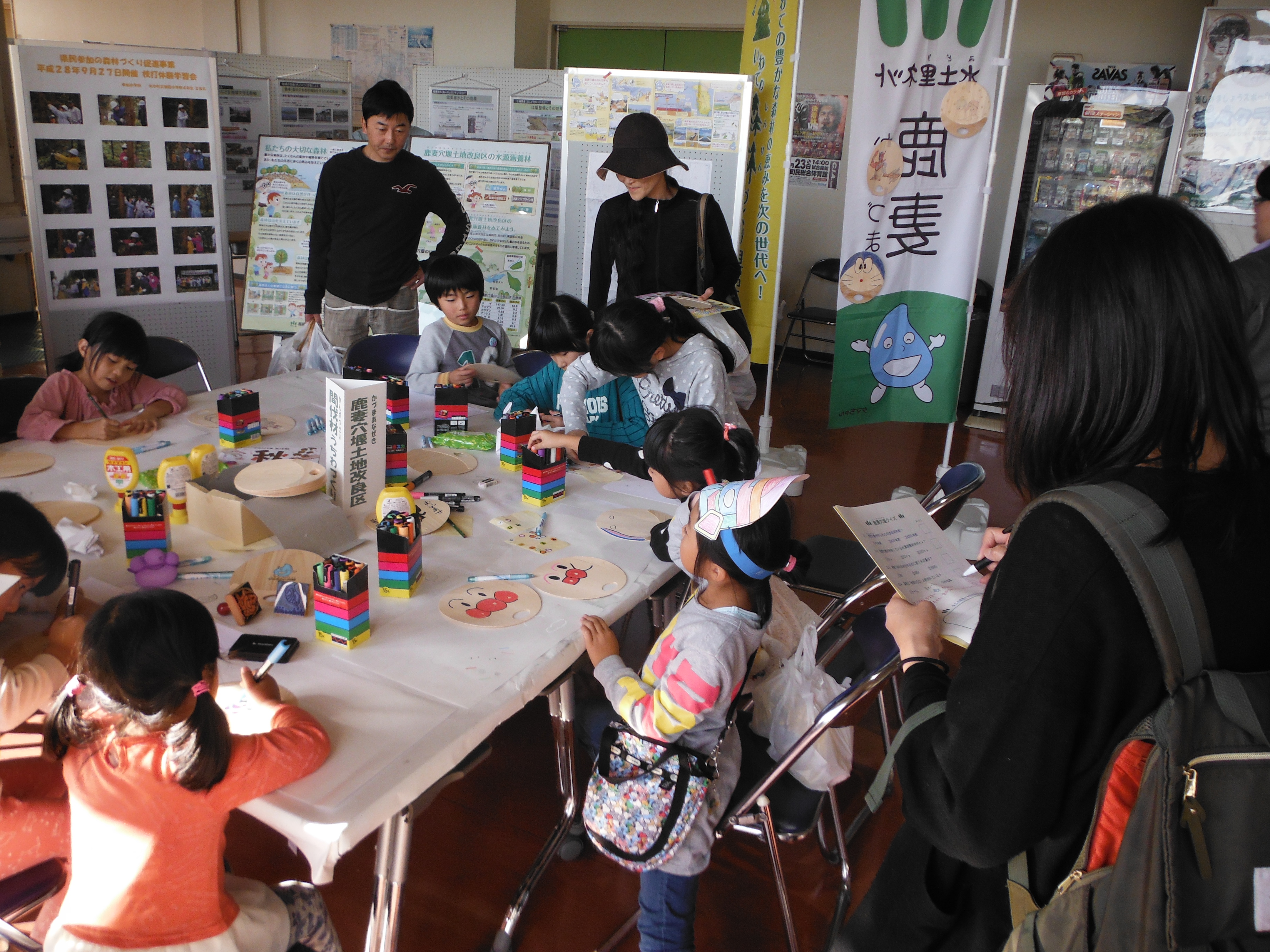 10月20日から21日にわたり矢巾町総合体育館等で開催された矢巾町秋まつりに出展しました。 当土地改良区は施設と水源涵養林の紹介コーナーを開設し、施設は土地改良区管内ジオラマを展示説明し、水源涵養林はパネル等を用いてそれぞれ紹介しました。 また、間伐材うちわ製作体験を行い、老若男女約300名が木材の有効利用を楽しく学ぶ機会となりました。