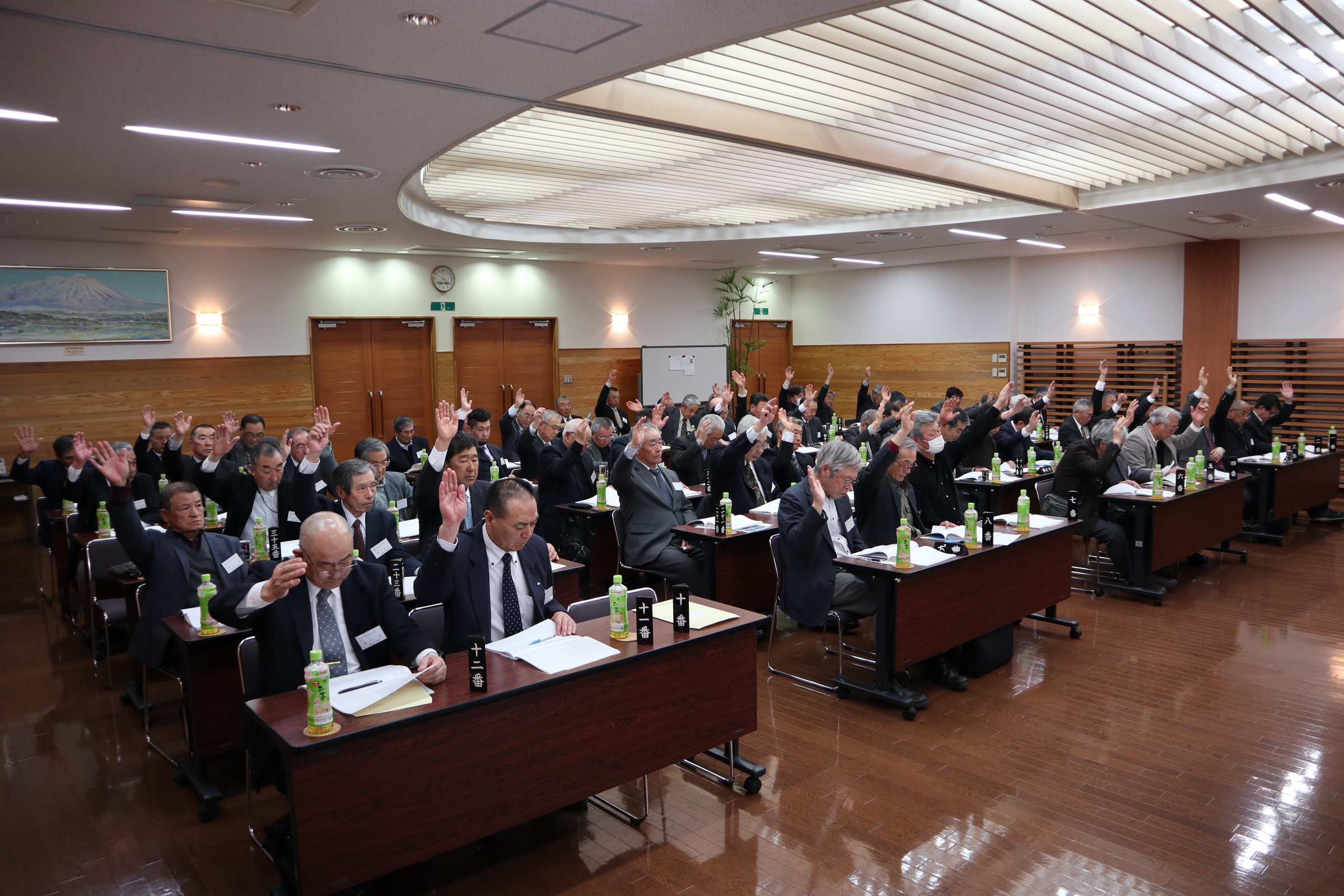 総代現員数63名中59名の出席を得て、来賓に東北農政局北上土地改良調査管理事務所次長 木村俊逸氏、岩手県盛岡広域振興局農政部農村整備室長 伊藤栄悦氏、紫波町副町長 藤原博視氏、盛岡市農林部次長 小笠原康則氏、矢巾町産業振興課課長補佐 藤田良彰氏を迎え、議長に米倉彰一郎総代(矢巾町徳田地区)を選出し、国営雫石川沿岸土地改良事業(国営施設応急対策)の施行申請について等26案件について審議がなされ、いずれも原案のとおり承認可決されました。
