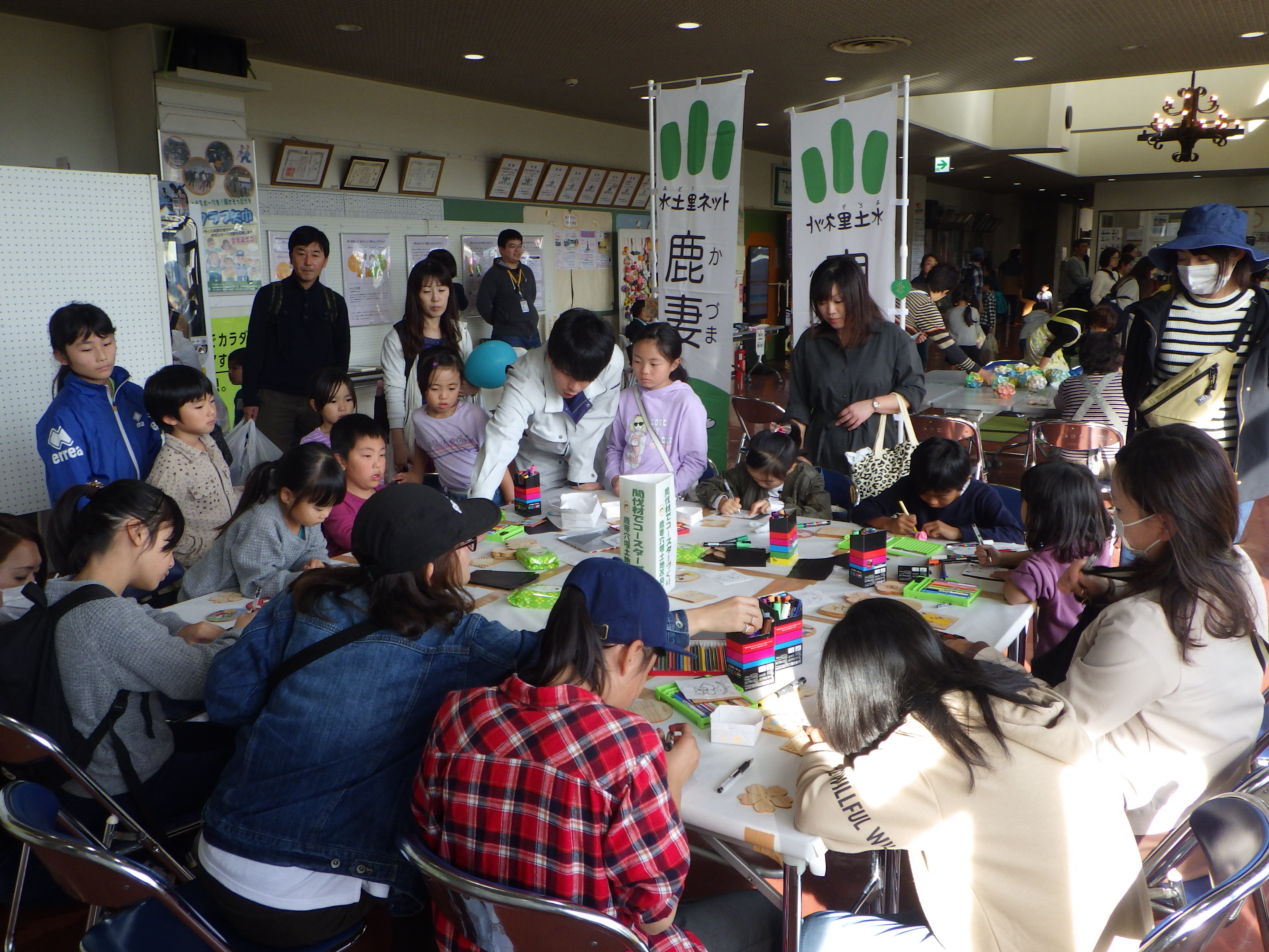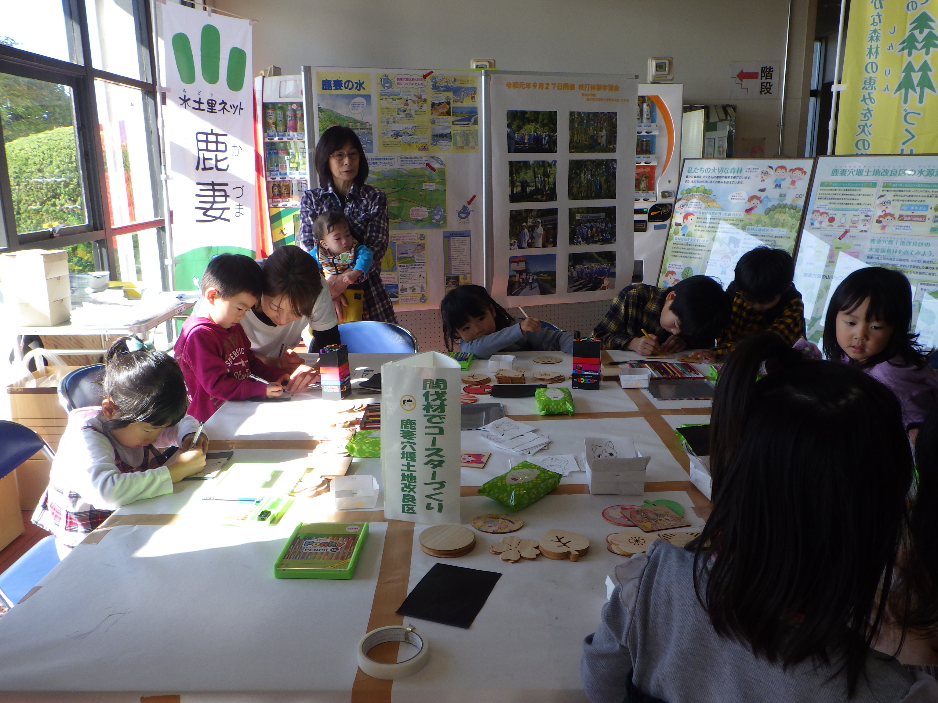 10月19日から20日にわたり矢巾町総合体育館等で開催された矢巾町秋まつりに出展しました。当土地改良区は水源涵養林の土地改良事業との関わりをパネル等を用いて紹介するコーナーを開設しました。間伐材コースターの製作体験では、コースターにお絵描きや着色をして約300名が木材の有効利用を楽しく学ぶ機会となりました。