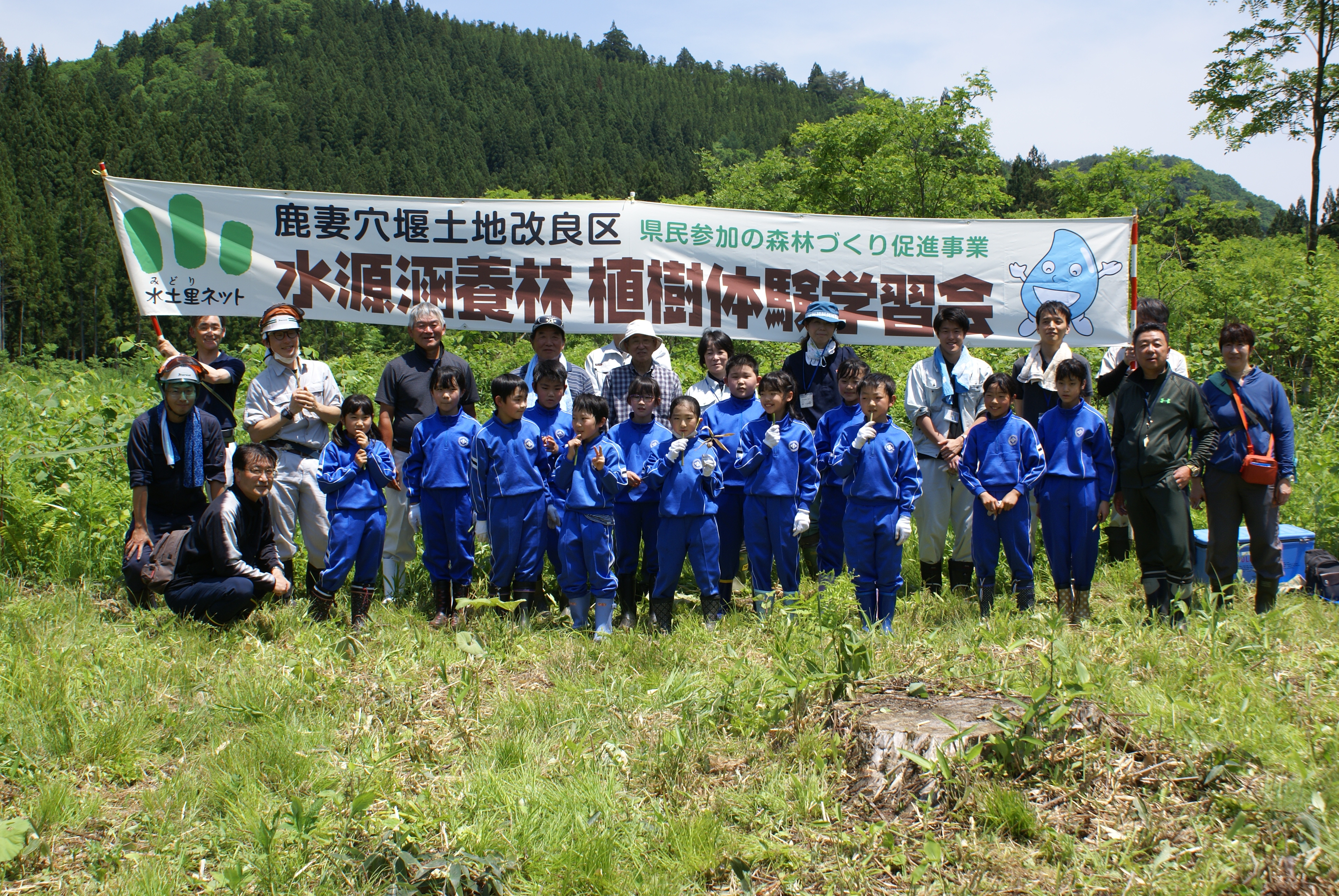 岩手郡雫石町鴬宿地内にある水源涵養林内で鹿妻穴堰土地改良区 植樹体験学習会を開催しました。