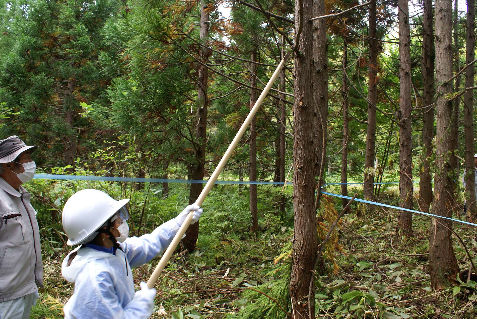 児童の皆さんは初めての枝打ち作業でしたが、すぐにコツをつかんで枝打ちに汗を流しました。