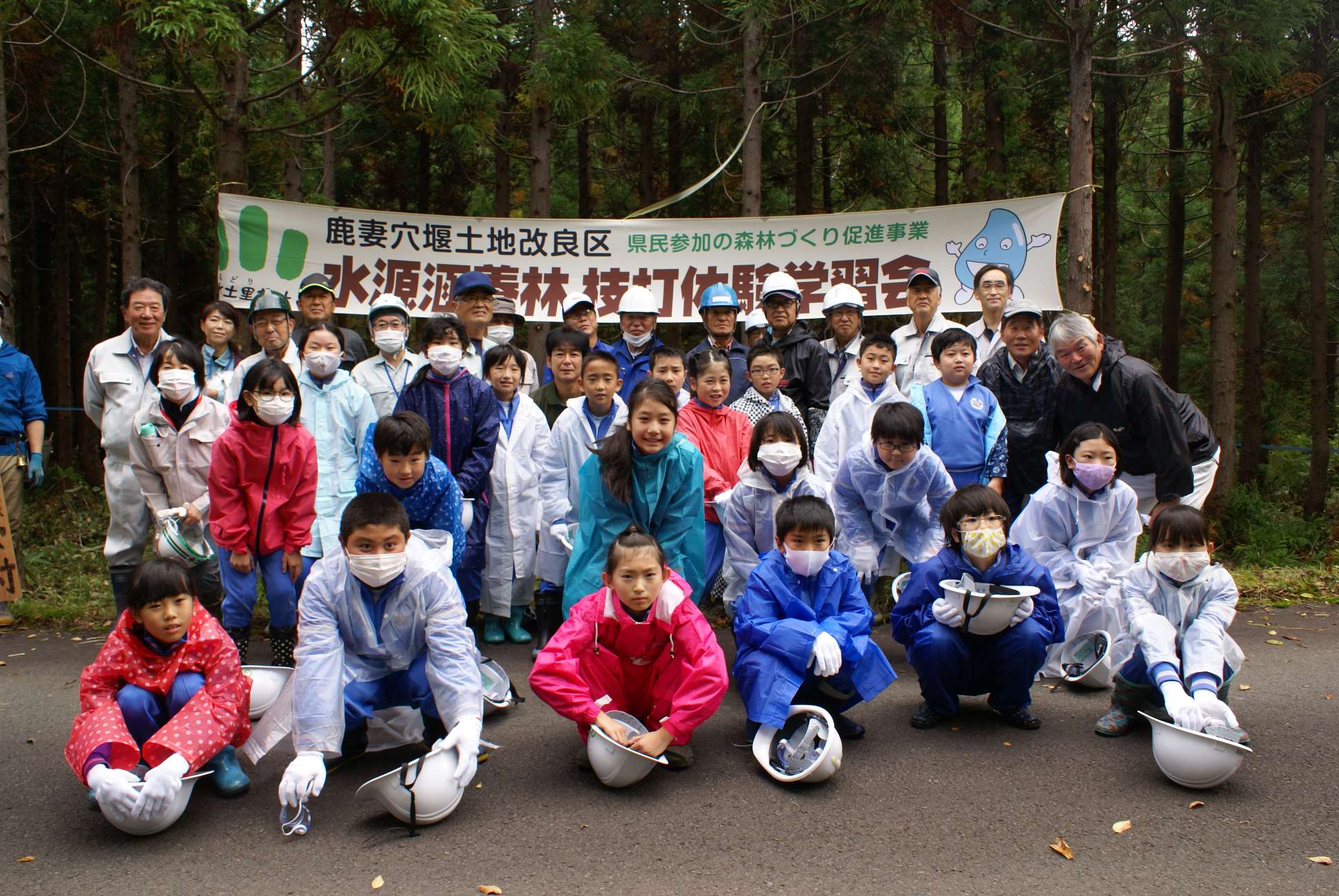 岩手郡雫石町鴬宿地内にある水源涵養林内で鹿妻穴堰土地改良区 枝打ち体験学習会を開催しました。