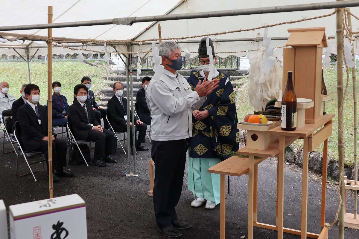 鹿妻穴堰通水安全祈願神事を盛岡市上太田にある鹿妻穴堰頭首工でおこないました。本年は新型コロナウイルス感染症対策のため規模を縮小し、北上川ダム統合管理事務所、北上土地改良調査管理事務所、岩手県盛岡広域振興局、岩手県企業局、管内3市町、土地改良区関係者の約30名が出席し、通水の安全と五穀豊穣を祈願しました。