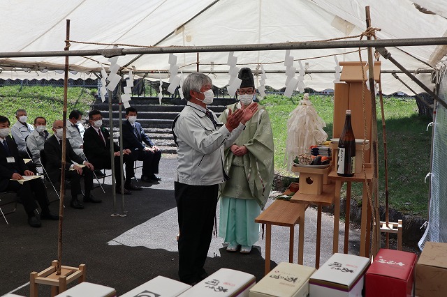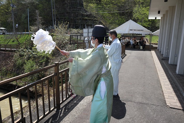 鹿妻穴堰通水安全祈願神事を盛岡市上太田にある鹿妻穴堰頭首工でおこないました。本年も新型コロナウイルス感染症対策をとり、北上川ダム統合管理事務所、北上土地改良調査管理事務所、岩手県農林水産部、岩手県盛岡広域振興局、岩手県企業局、盛岡市、矢巾町、紫波町、岩手県土地改良事業団体連合会、岩手中央農業協同組合、土地改良区関係者の約30名が出席し、通水の安全と五穀豊穣を祈願しました。