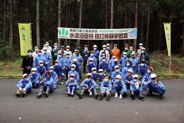 雫石町鴬宿にある水源涵養林内で県民参加の森林づくり促進事業による 枝打ち体験学習会を開催しました。