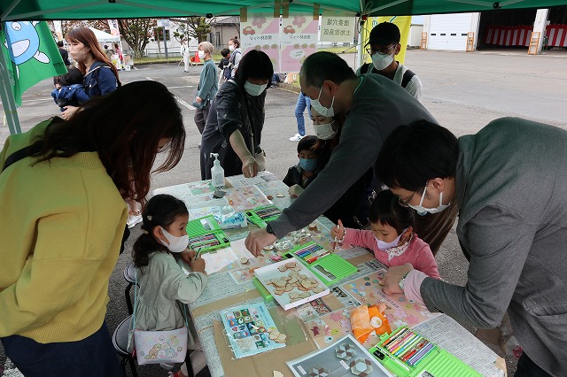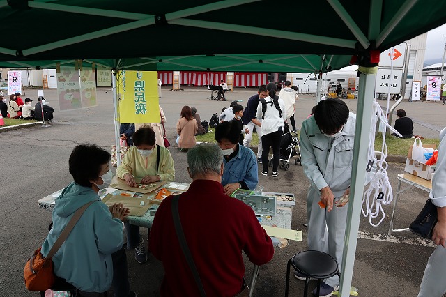 矢巾町役場庁舎前特設会場で開催された矢巾町秋のや市(農業祭)に出展しました。当区は森林と農業の関係、森林の機能、森林管理の重要性等を県民参加の森林づくり促進事業を使って紹介しました。ブースでは寄木コースターと間伐材バッジの製作体験を通じ木材の有効利用について楽しく学ぶ機会となりました。