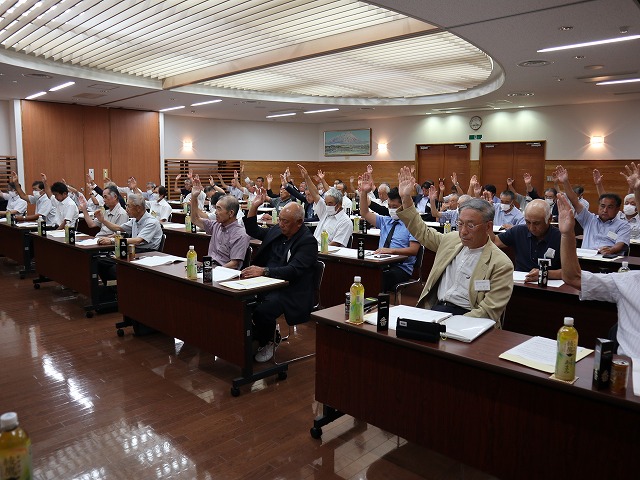 令和6年9月6日午後3時より当土地改良区大会議室において臨時総代会を開催しました。総代現員数63名中58名が出席し、議長に畠山耕一 総代(矢巾町徳田地区)を選出し、令和5年度事業報告及び一般会計・特別会計収入支出決算の承認について等4案件について審議の結果、いずれも原案とおり承認、可決されました。
